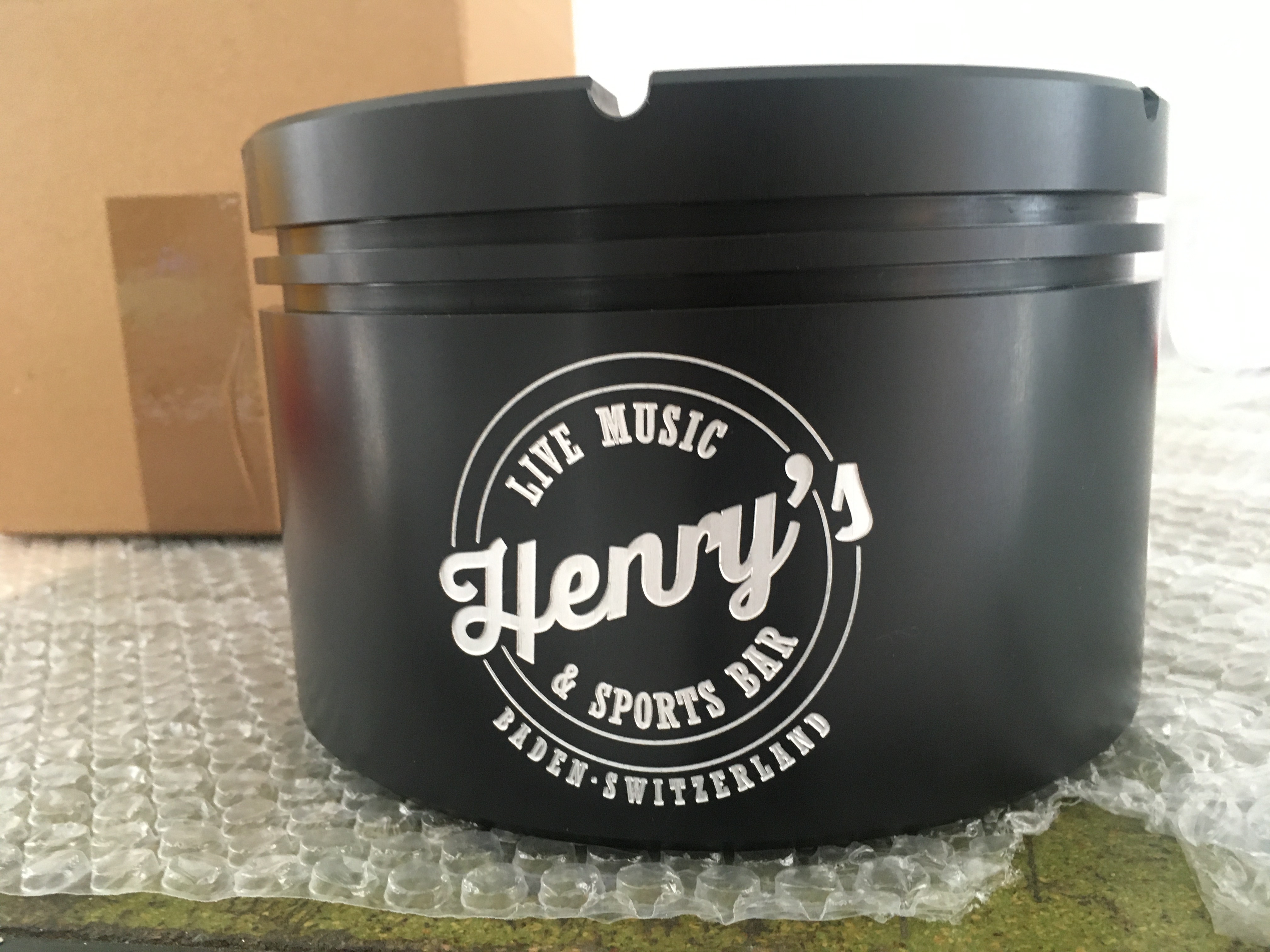 Massiver Voll-Aluminium - Aschenbecher in Motorenkolbenform. Der grosse "Äschbi" ist der Gastro-Aschenbecher, der Hingucker in jeder Schrauber-Werkstatt, Bartisch und Restaurant-Raucherecke! Das perfekte Geburtstags-, Jubiläums- und Weihnachtsgeschenk!