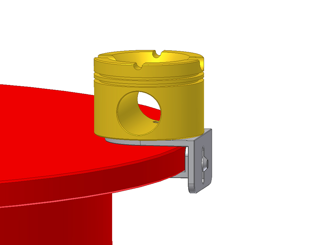 Die Tischhalterung besteht aus einem Winkel, der fest an der Unterseite des Äschbis verschraubt wird. Mit einem zweiten, kleineren Winkel wird unterhalb der Tischkante geklemmt und seitlich verschraubt. Die Halterung mit dem verschraubten Aschenbecher kann schnell demontiert, gereinigt und neu befestigt werden. Sie ist somit die perfekte Sicherung für kleinere Aschenbecher direkt am Bartisch oder Gartenmöbel.